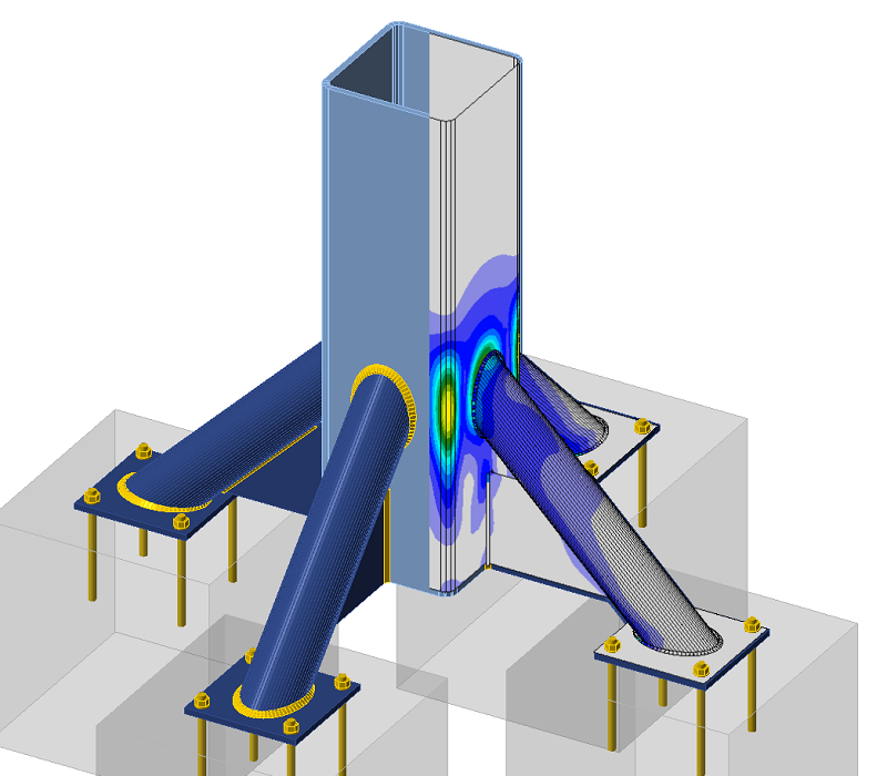 Design steel connections of any type or complexity. Start from scratch, define property dependencies using parametric design, or import connections from your CAD or BIM software. Apply loading, visualize force flow, and generate full sketches and code-check reports. Connections include: