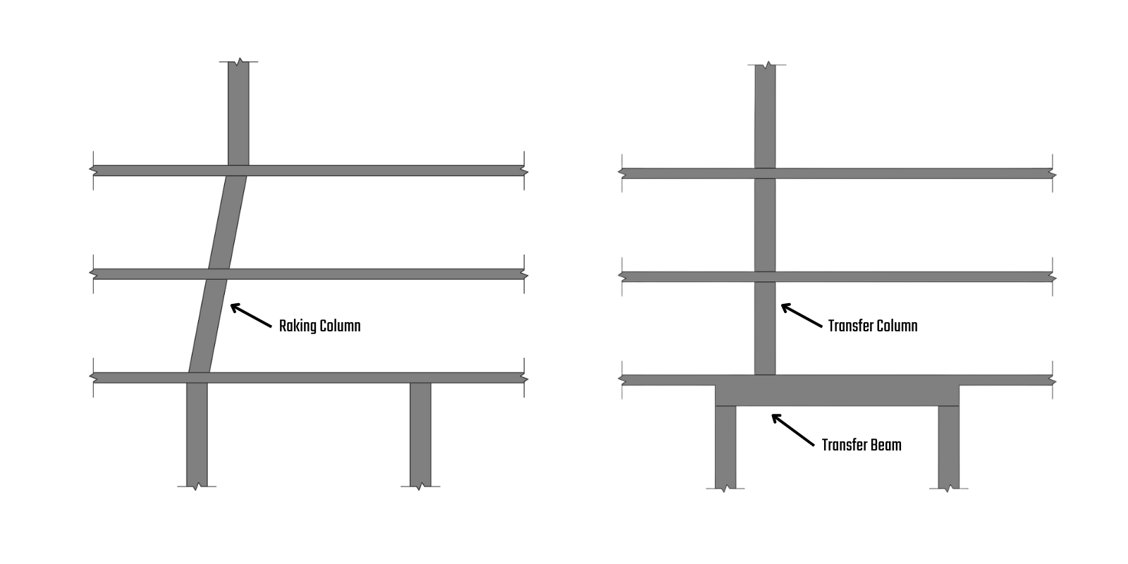 Změny v užívání mezi jednotlivými patry (například parkovací garáže pod lobby nebo třeba kanceláře pod byty) často vyžadují posun rastru sloupů, aby vyhovoval jak architektonickým, tak funkčním potřebám. Poznejte neprůběžný sloup, kterému se běžně v zahraniční literatuře říká „kráčející“ sloup. Jedná se o chytrou a praktickou alternativu k objemným nosníkům přenášejících zatížení vodorvně nebo vizuálně rušivým sloupům sledujících dráhu zatížení.