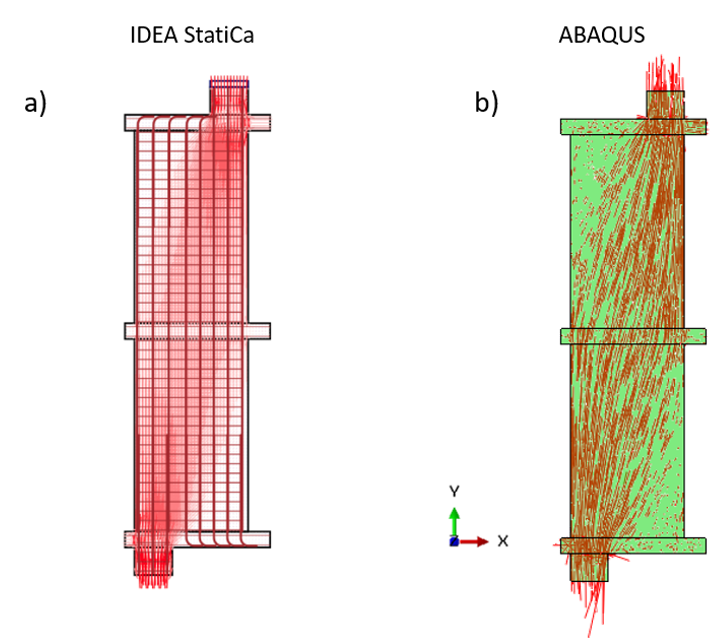 Porovnání směru hlavních napětí vypočtených pomocí modelů IDEA StatiCa a ABAQUS
