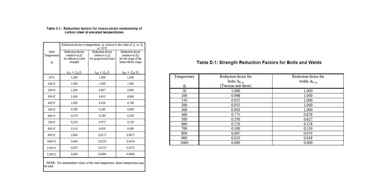 Podle teploty prvků je pak určena degradace materiálu, a tedy i součenitel, který snižuje vlastnosti materiálu. Posudky plechu, šroubů a svarů jsou pak stejné jako u klasické analýzy napětí a deformací, ale používají se redukované hodnoty.