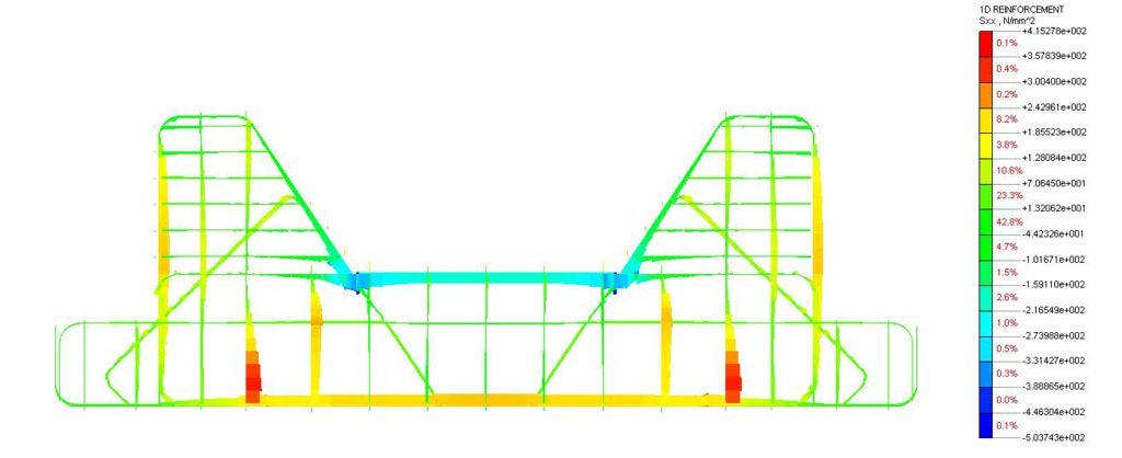 Napětí na výztuži (midas FEA)