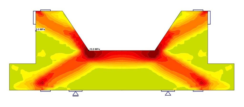Díky úzké spolupráci se Stavební fakultou VUT v Brně jsme dostali šanci ověřit aplikaci IDEA StatiCa Detail využívající unikátní metodu výpočtu CSFM (Compatible Stress Field Method) s reálným experimentem. Cílem projektu byla verifikace a validace zesilování krátké konzoly nesoudržnou předpínací výztuží. Výsledky analýzy jako napětí v betonu, napětí ve výztuži a průhyb byly porovnány s výstupy experimentu. Výsledky byly navíc ověřeny také v komerčním softwaru MIDAS FEA pomocí Smeared crack model.