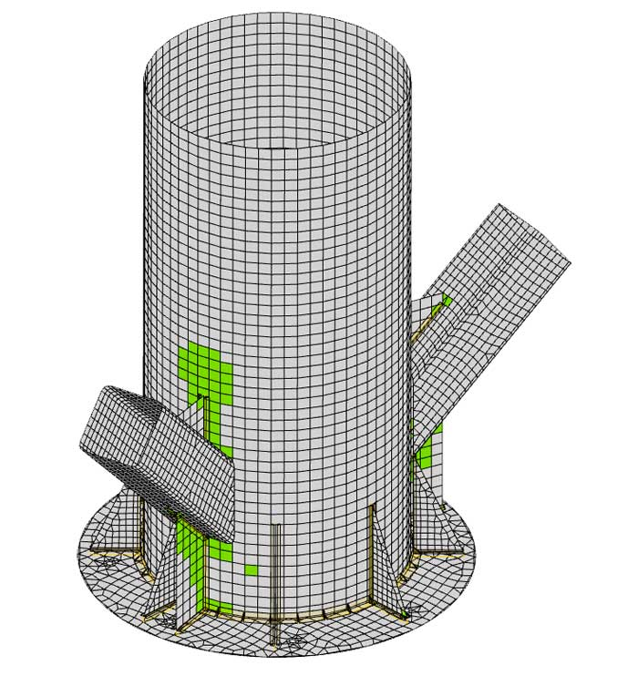 - Výpočet základní frekvence nosné konstrukce naplněné kapalinou. Toto bylo provedeno pomocí modelu s konečnými prvky. Byly použity dva nezávislé modely konečných prvků.