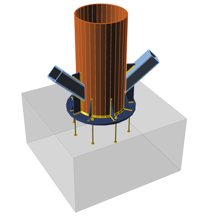 - Odan Detech použil jiné FEA programy pro analýzu a návrh konstrukce a IDEA StatiCa Connection pro návrh kotvení.