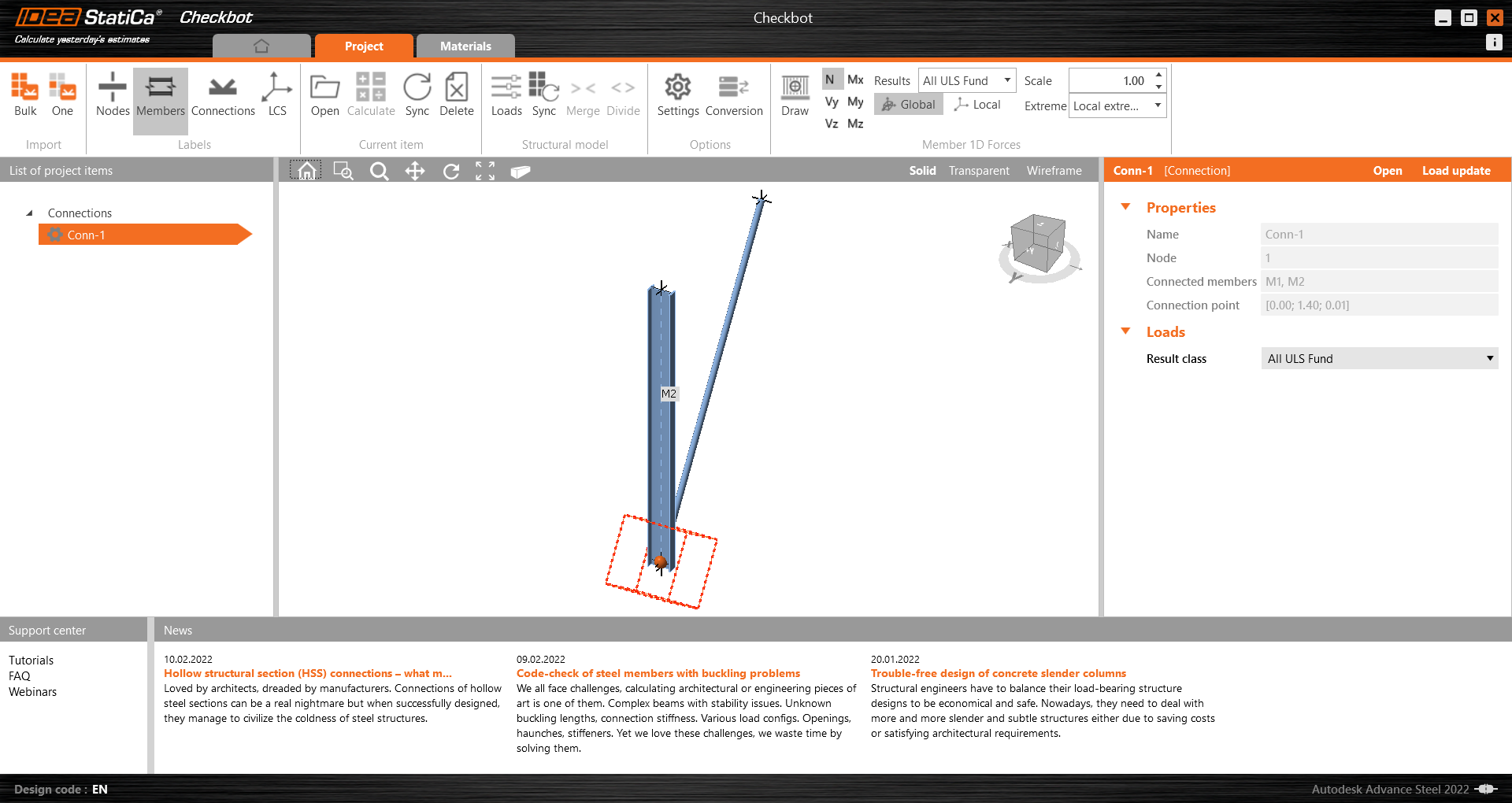 Úspěšně jste přenesli styčník z Advance Steel do IDEA StatiCa Connection pomocí aplikace Checkbot.