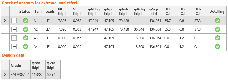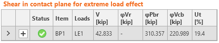 Manual check of bolts, welds, plates, and concrete in compression is done according to AISC 360-16. The capacity of shear lug is determined according to ACI 349-01. Anchor rods are designed according to AISC 360-16 – J9 and ACI 318-14 – Chapter 17.