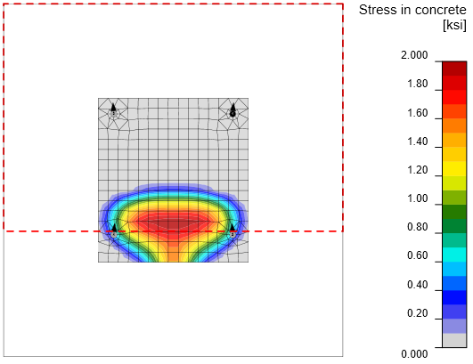 \[\phi f_{p,(\max)}= \phi 1.7 f'_c = 0.65 \cdot 1.7 \cdot 4 = 4.4 \textrm{ksi} \]