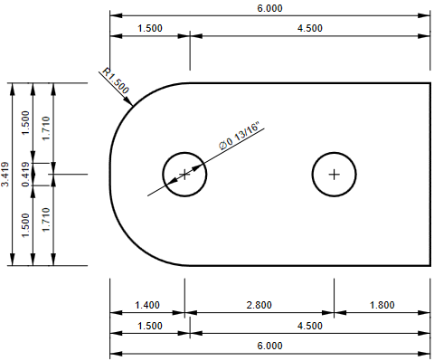 The tongue are two plates with the thickness of 1/4'' to avoid eccentricity in compressive loading. The gross and net areas in tension are \(3.4 \cdot (2\cdot 1/4)=1.7\) in2 and \((3.4-13/16)\cdot (2\cdot 1/4)=1.3\) in2, respectively.