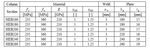 Design resistance calculated by CBFEM is compared with the results of CM. The weld design resistance is compared only. Overview of considered examples and material is given in Tab. 4.5.1. Geometry of joints with dimensions is shown in Fig. 4.5.2.