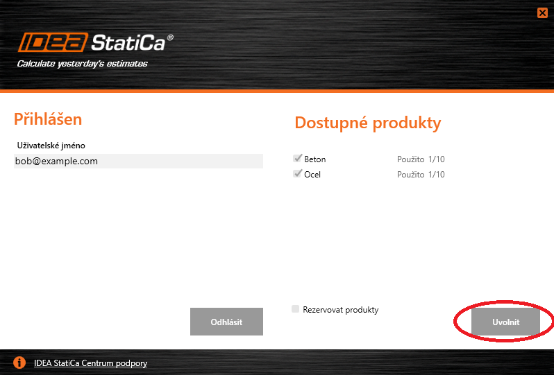 Pokud chcete přestat používat IDEA StatiCa Ocel a začít používat pouze IDEA StatiCa Beton, musíte nejprve uvolnit rezervovaný produkt. Poté, co zvolíte příslušný produkt pro Beton, zpřístupní se adekvátní aplikace.
