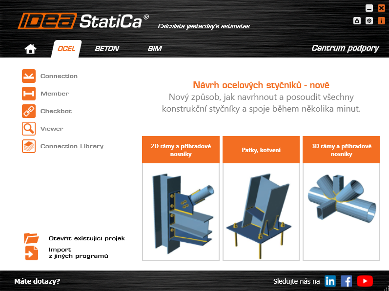 Například: Vaše společnost si zakoupila licenci se dvěma produkty - IDEA StatiCa Beton a Ocel. Pokud vyberete pouze produkt "Ocel", IDEA StatiCa na vašem počítači umožní spouštět pouze aplikace pro Ocel (Connection, Member, Checkbot atd.). Betonové aplikace vám nebudou k dispozici a nebudete spotřebovávat tento produkt a jednotlivé aplikace pro beton z licence vaší společnosti.