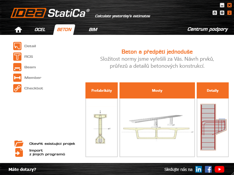 IDEA StatiCa umožňuje efektivní používání zakoupených produktů. Jestliže má vaše firma zakoupeny produkty například pro ocel i beton dohromady, můžete si nastavit, které z těchto produktů při spuštění IDEA StatiCa si chcete zablokovat pro sebe a které ponechat volné pro kolegy.