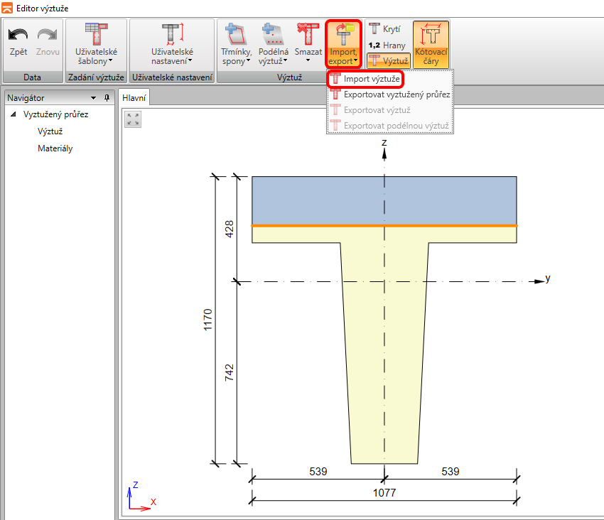 Načtěte výztuž z přiložené šablony compositeT.nav pokračujte pomocí OK.