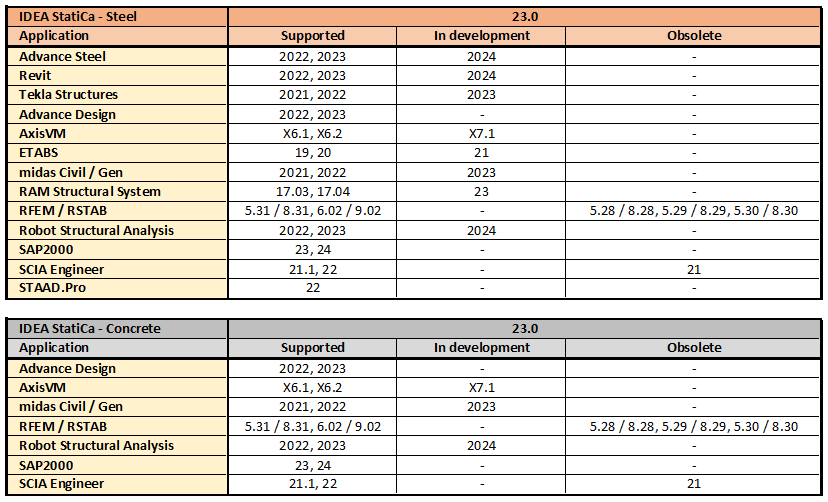 Aktuálně podporované verze pro nejnovější patch IDEA StatiCa je uveden na stránce BIM linky: Podporované verze aplikací třetích stran.