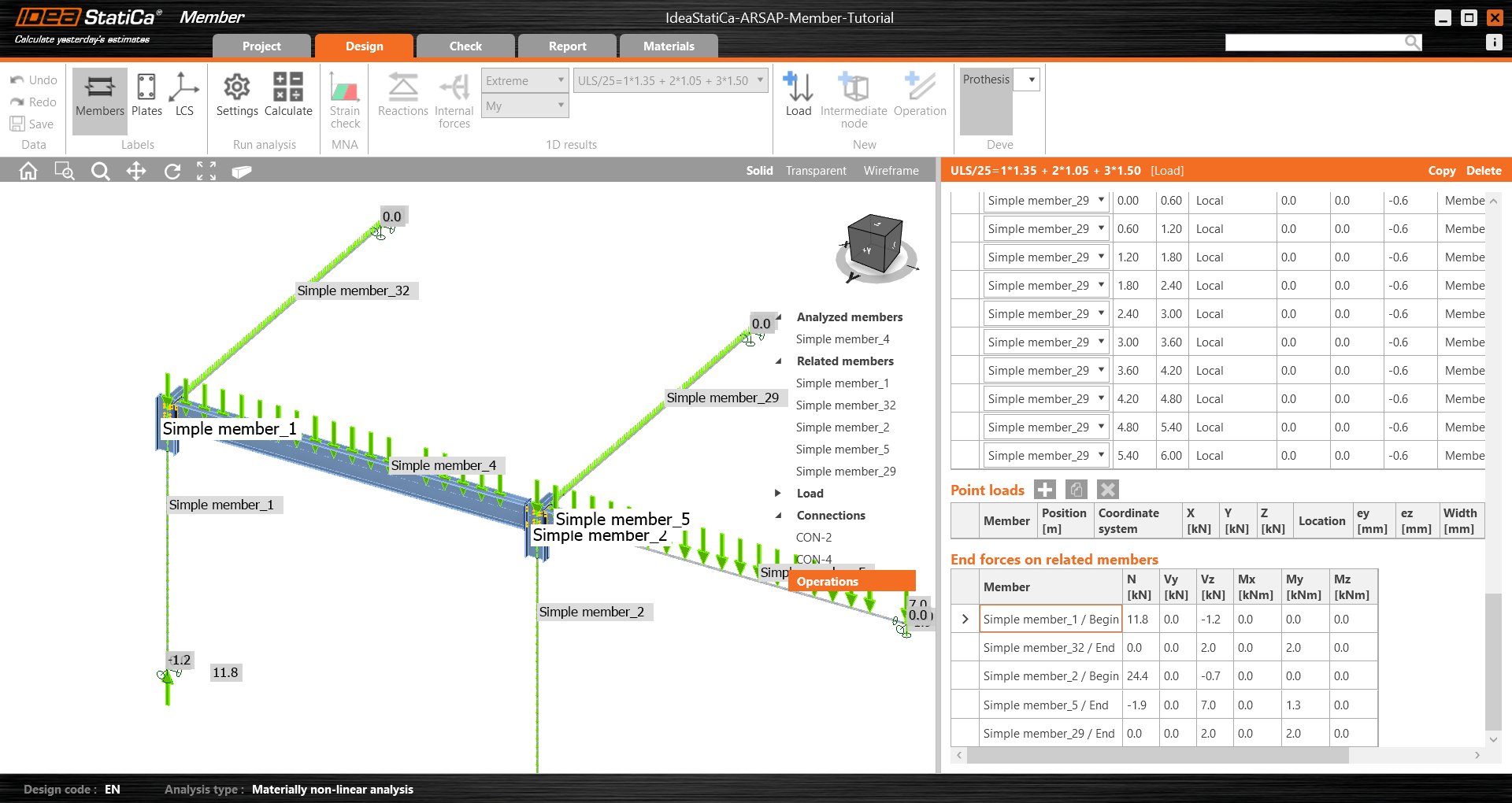 Open Simple member_4 to see the full list of members, connections and load combinations.