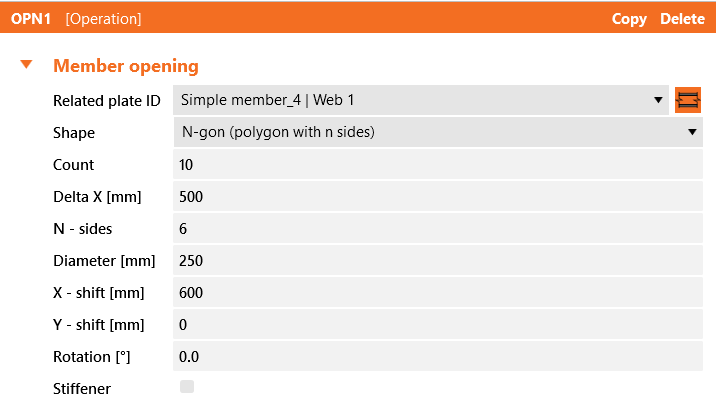 All the data such as geometry and loads have been imported, and all connections have been designed. The model is ready to be analyzed, but first, let's add some openings to the web of the member. Select the member then on Operations in the tree menu and pick the operation Opening.