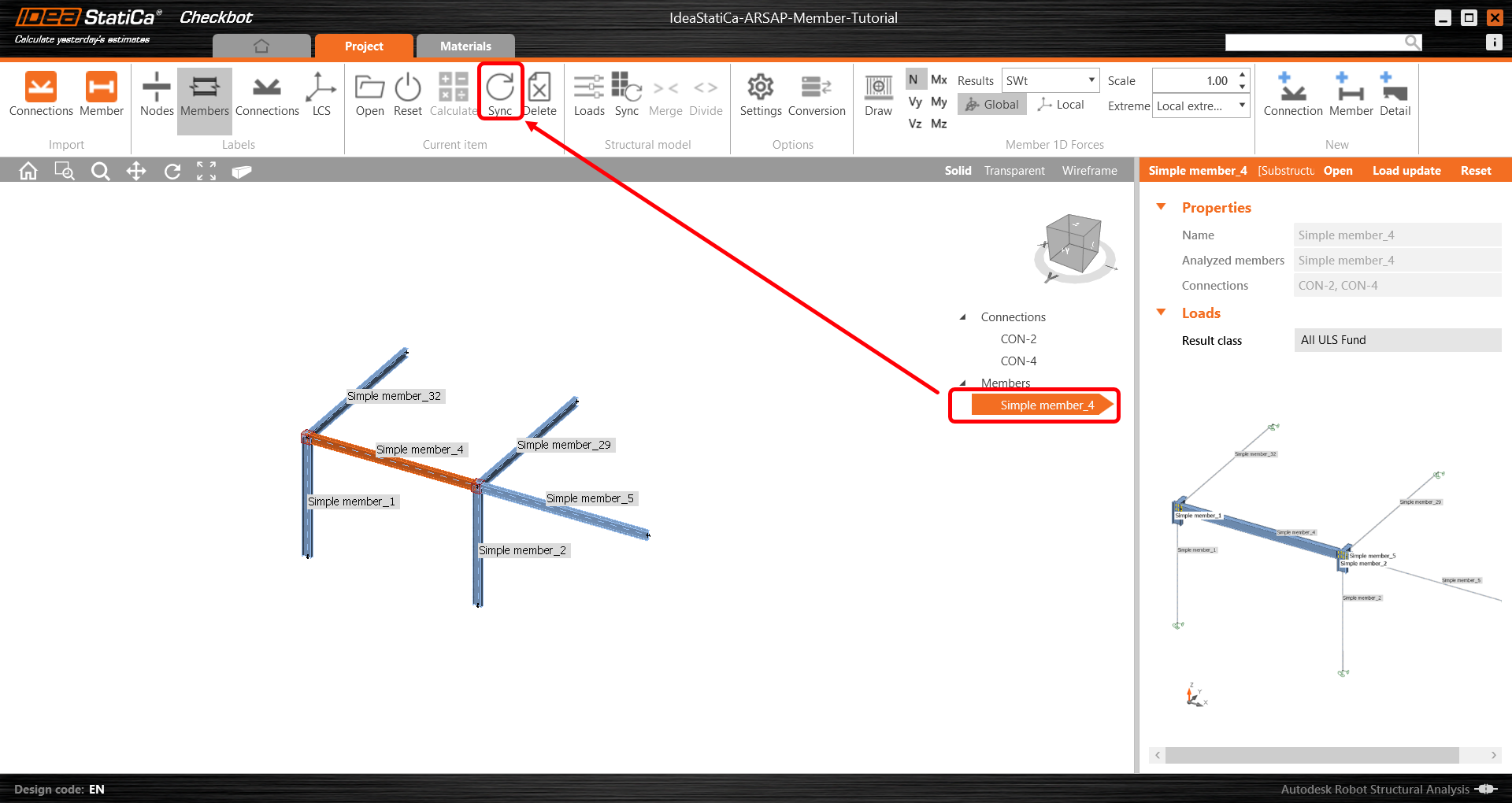 Select the member from the list and click Sync from the Current item panel or Sync from the Structural model panel to update the whole model.