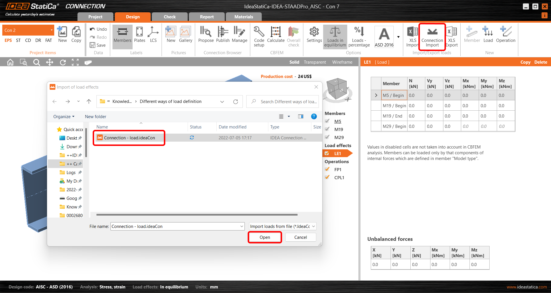 Poté vyberte .ideacon soubor, ze kterého chcete importovat zatížení.