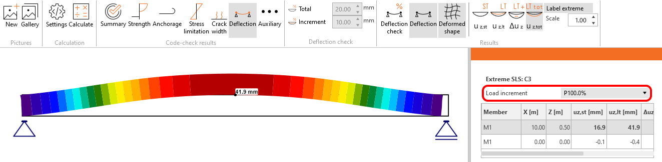 Load cases are applied in 3 increments depending on the assigned Load type. In the graph below, you can see the stress-strain diagram used for SLS. Increments and changes in the modulus of elasticity are displayed.