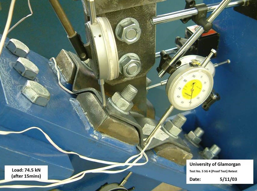 Zurück im Labor zeigt das nächste Bild, wie die Verbindung auf die Normanforderungen geprüft wird (und natürlich andere Festigkeits- und Versagenstests, die hier nicht gezeigt werden).