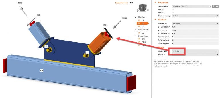 Wenn wir dem Modell ein Bauteil hinzufügen, wird seine Länge automatisch von der Software, basierend auf der Höhe des Querschnitts, berechnet. Der Berechnungsalgorithmus ist Teil der CBFEM-Methode und wird nach numerischen und experimentellen Ergebnissen kalibriert.
