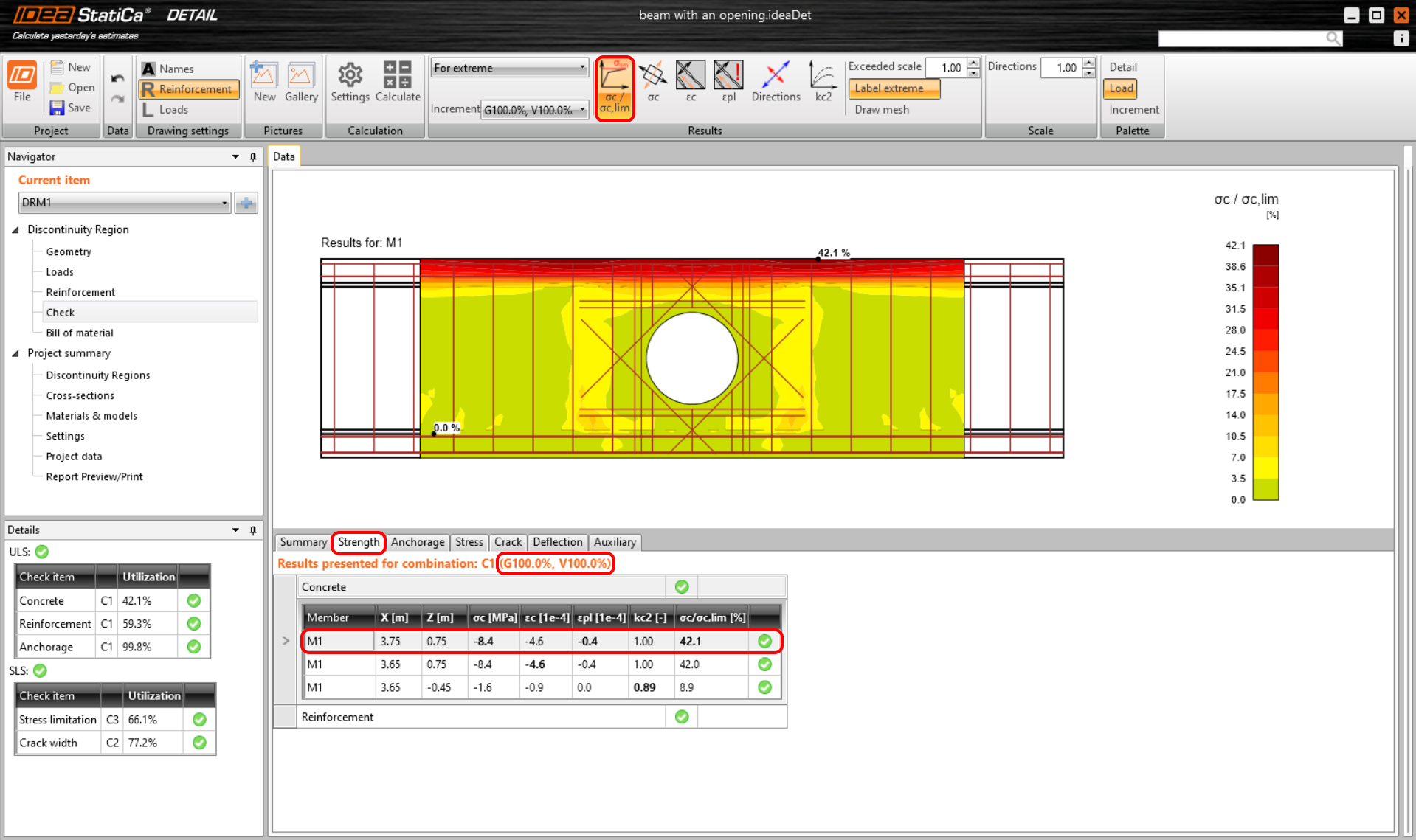 Um die detaillierten Ergebnisse von GZT zu öffnen, ändern Sie die Tabelle auf Festigkeit. Wie oben in der Tabelle erwähnt, wurde die Kombination C1 verwendet, um den GZT zu überprüfen.