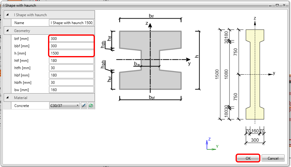 Beginnen Sie mit der Definition der Geometrie, indem Sie den Querschnitt des Bauteils M1 ändern.