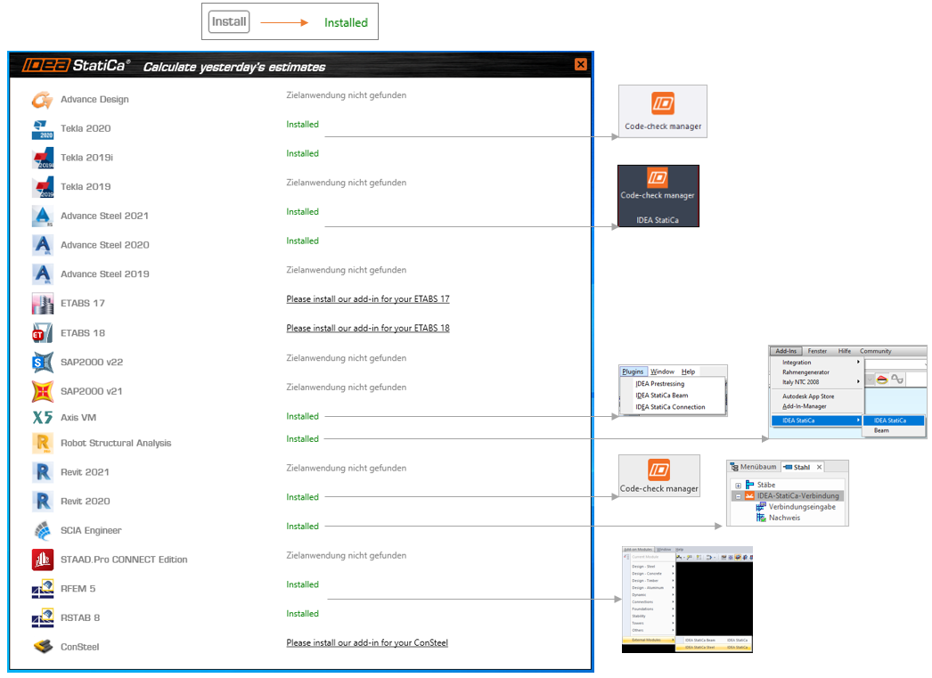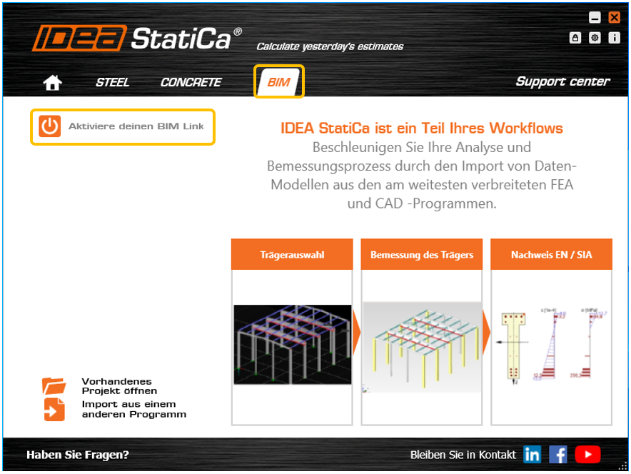 Einsehen der BIM Links in der Liste und Aktivieren der Verknüpfungen. Achten Sie auf die Kompatibilität der aktuellen IDEA Version mit der Version des jeweiligen Partnerprogramms