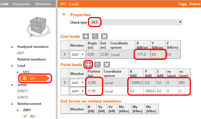 The last item to be defined is the Load. Set the load case. Click on the plus button to add a new Point load.