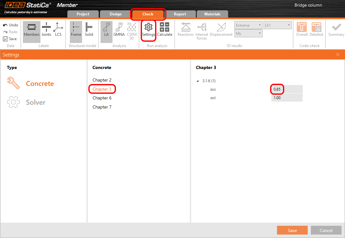 The model is done. Before calculating, go to Settings to Chapter 3 and set αcc to 0.85.