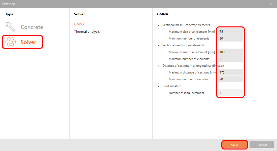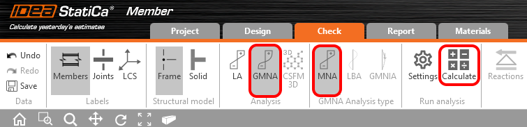 Select the GMNA type of analysis and proceed to MNA - Materially non-linear analysis.