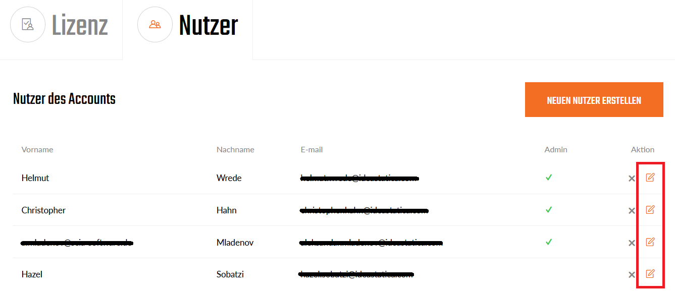 - Auf den orangefarbenen Button unter „Aktion" klicken