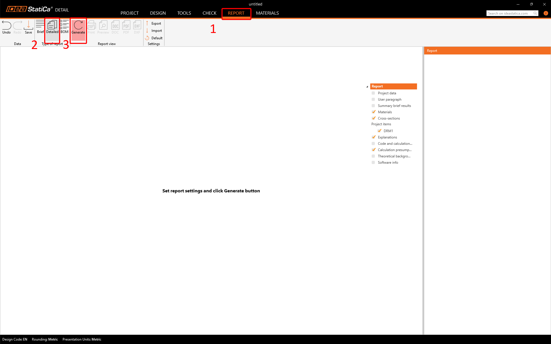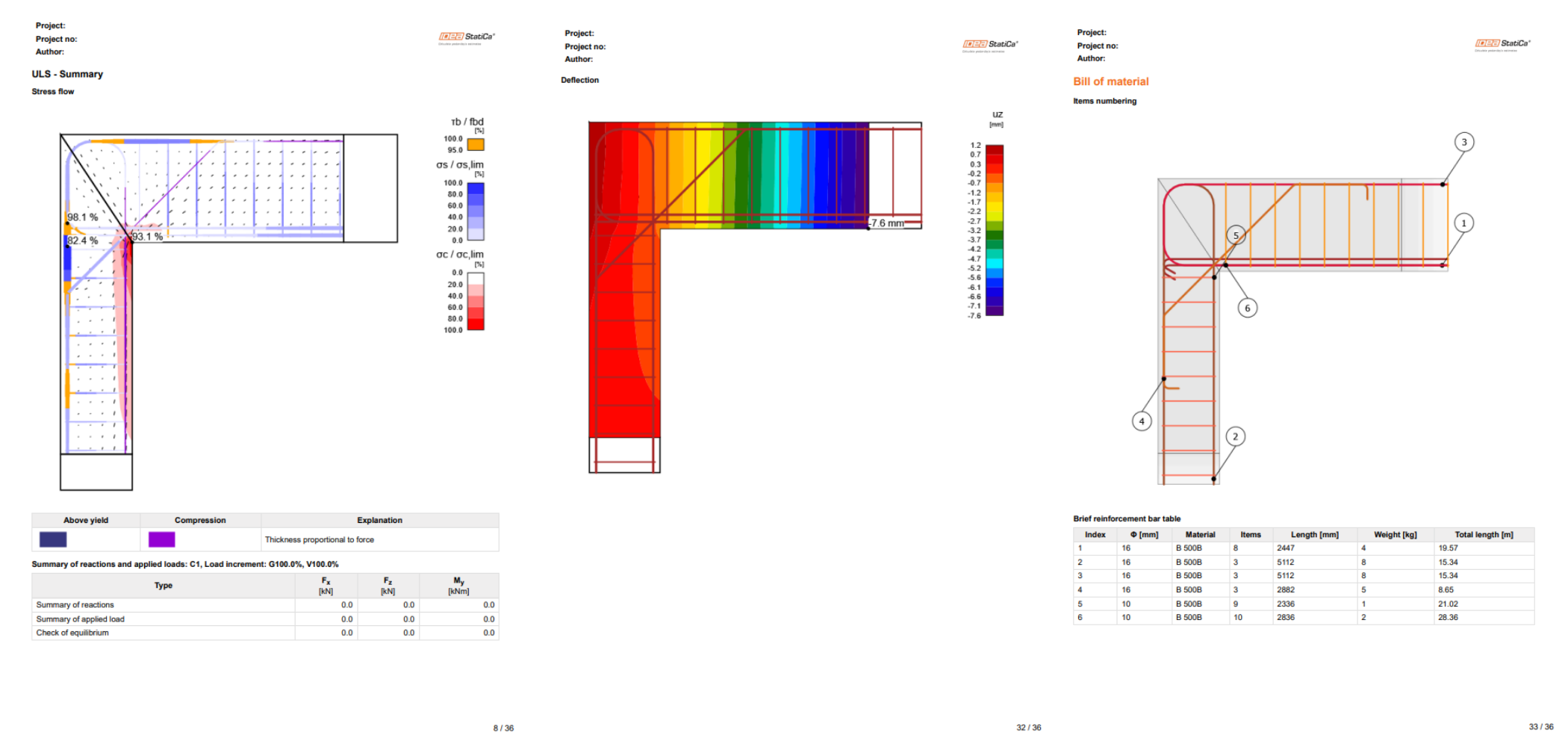 Zum Schluss gehen wir zum Reiter Bericht . IDEA StatiCa bietet einen vollständig anpassbaren Bericht, den Sie ausdrucken oder in einem editierbaren Format speichern können.