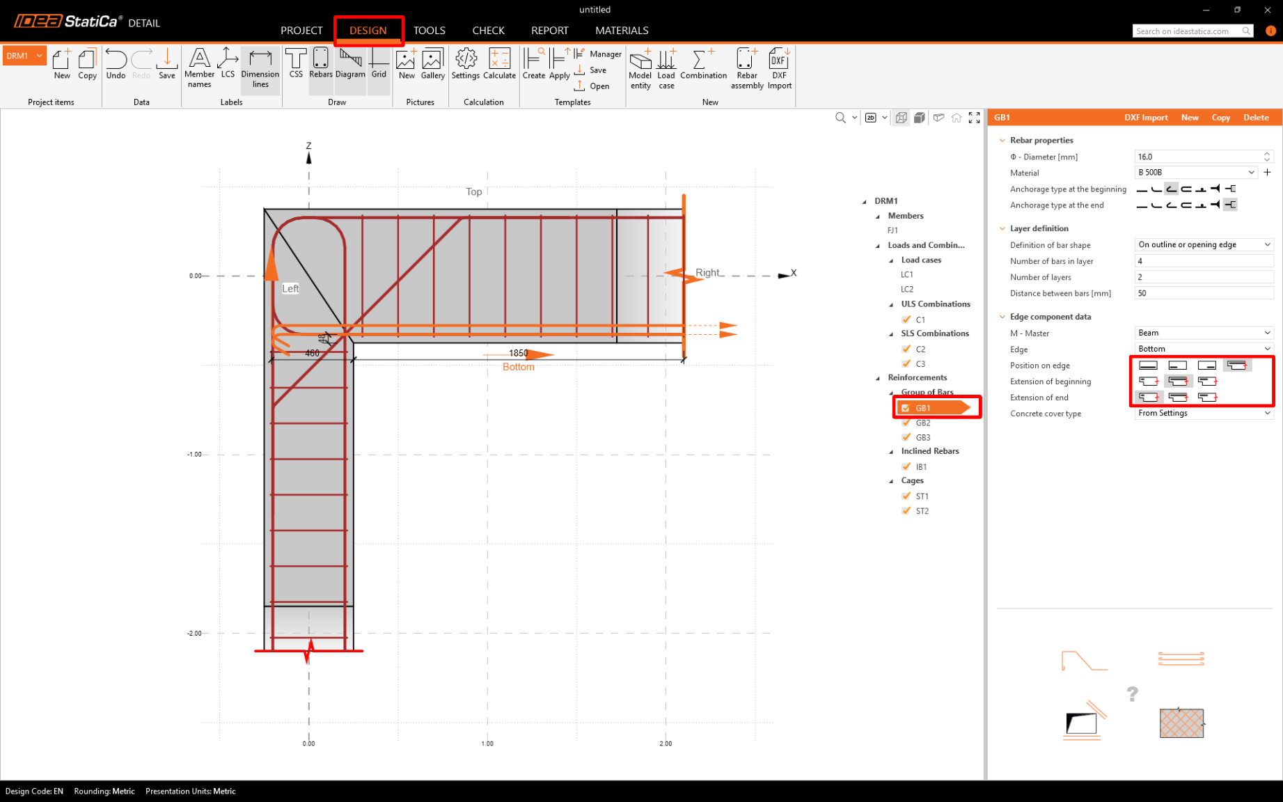 Fahren Sie mit der Definition der Bewehrungen fort. Sie werden die von der Vorlage erstellten Elemente bearbeiten.