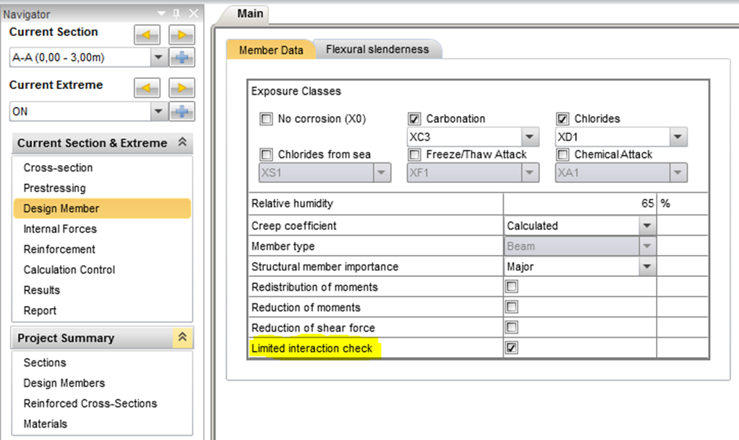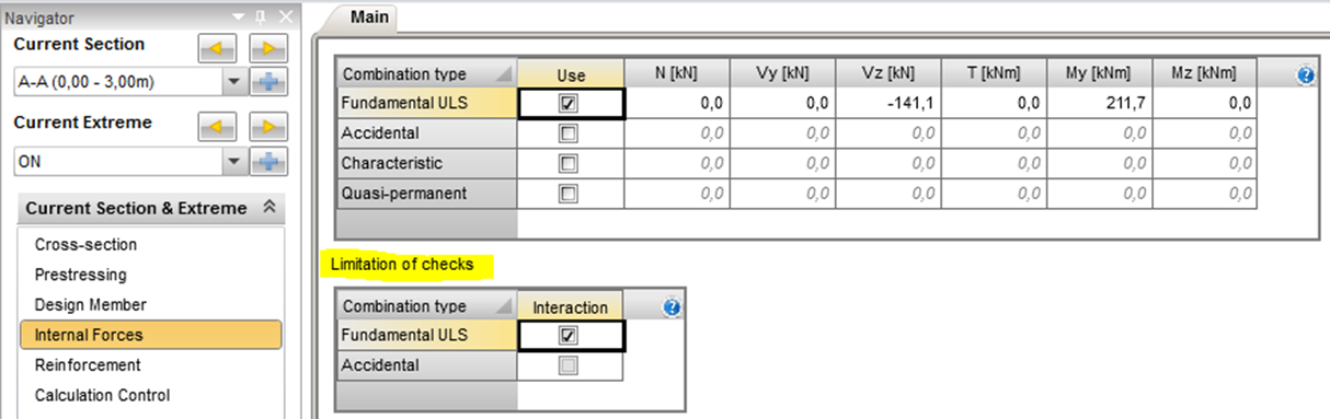 We added limited interaction check also to RCS. In previous versions, this was possible only in Beam module. To access this check, please find it in Current Section & Extreme -> Design Member -> Member data and check the checkbox. After this, you should be able to decide in which type of combination it should be considered in Internal forces Tab.