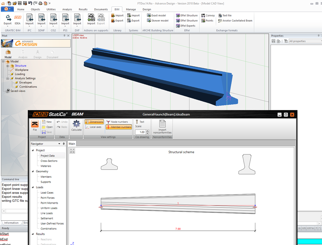 New BIM link with Graitec´s Advance Design with the possibility to import beams into IDEA Beam.