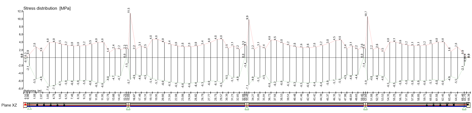 • Linear stresses along the beam length