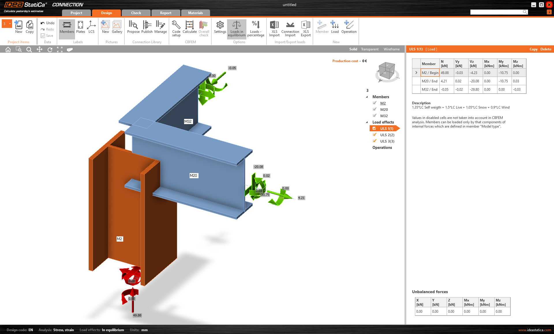Lasten wurden importiert und passen auf die entsprechenden Bauteile (Die Lasten sind ausgeglichen und die Verbindung befindet sich im Gleichgewicht).