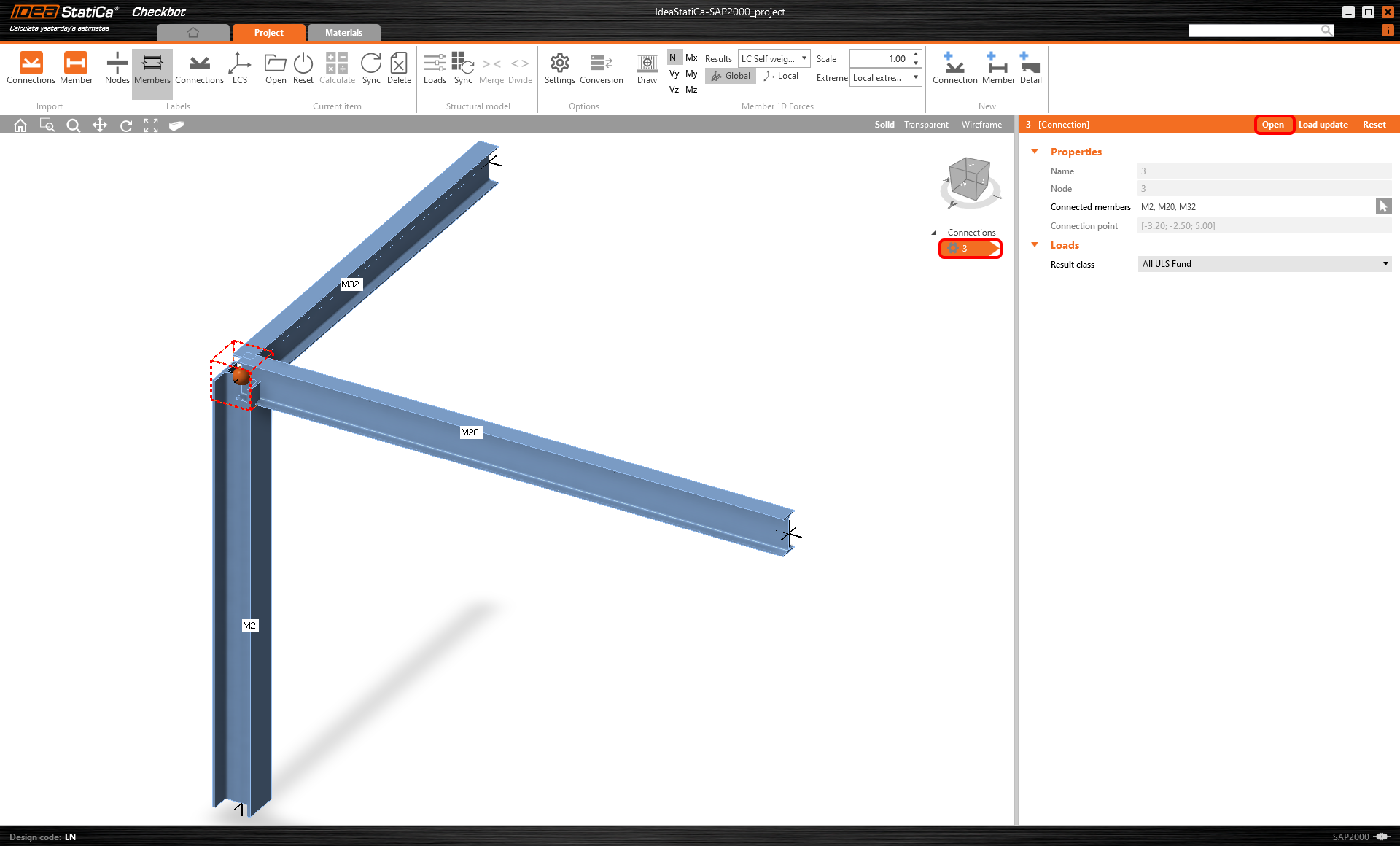 Klicken Sie auf Öffnen. Das Anwendungsfenster IDEA StatiCa Connection wird automatisch mit der importierten Verbindung angezeigt.