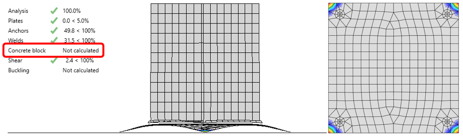 Für den Betonblock wird ein Nachweis für Druckbelastung geführt (Kontaktspannung zwischen Fußplatte und Betonoberfläche; nach EN 1993-1-8, Abs. 6.2.7 und Abs. 6.7), wenn eine Kontaktspannung infolge einer Druckbelastung, von der Fußplatte auf den Betonblock, ermittelt wird.