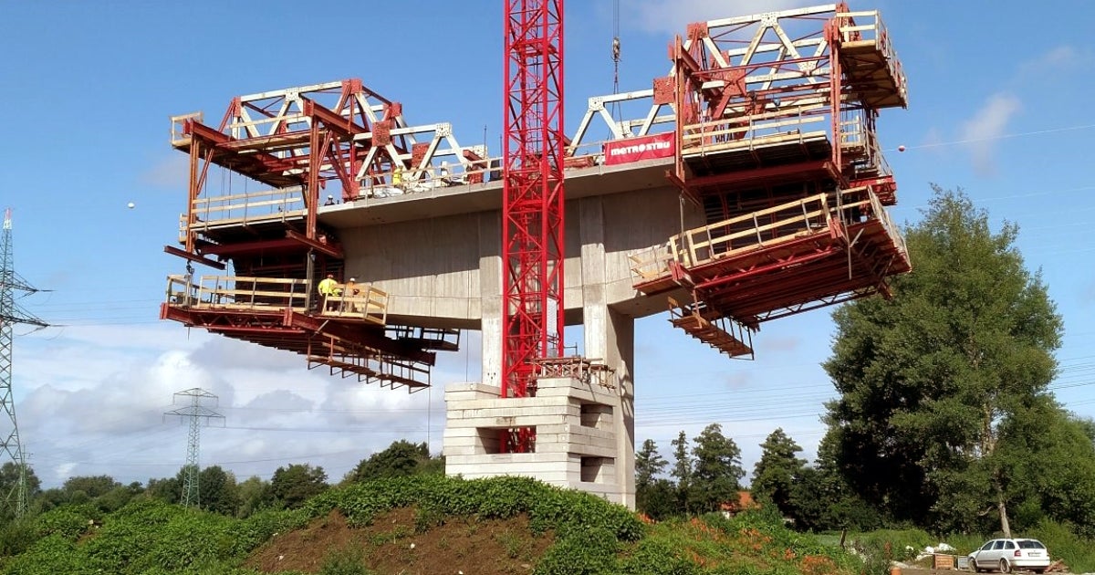 The construction of the superstructure began at pier P34. Initially, the pier table was erected, and two formwork travelers for cast-in-situ segments were assembled. Subsequently, 5-meter segments were constructed symmetrically using these travelers. To erect each segment, two 19-wire tendons made of Y1860S7-15.7 prestressing steel, which were provided by the fabricator VSL, were utilized. The cross-sectional height of each segment tapers from 5 meters toward the center of the span to a height of 2.1 meters. Once the balanced pair of segments was completed at P34, a similar pair was constructed on pier P35 using the same method. Finally, each section of the substructure was connected by closure segments placed in the middle of the spans.