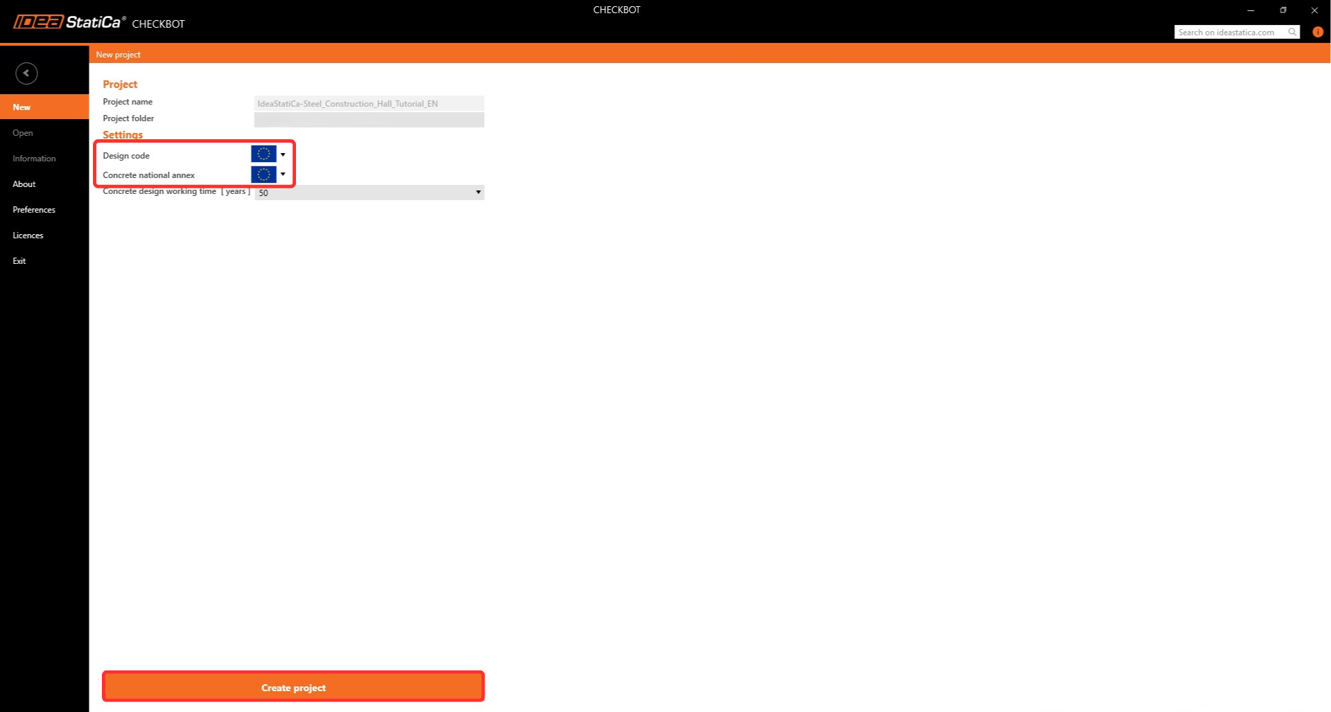 Cree el nuevo proyecto en Checkbot.