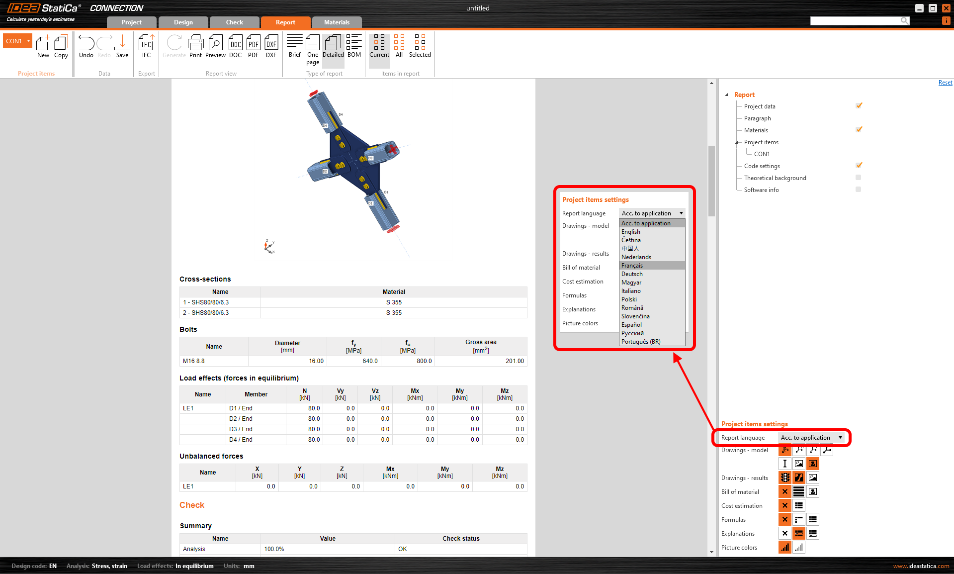 Disponible en las aplicaciones IDEA StatiCa Connection y Member.
