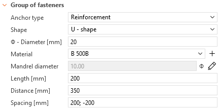 • L-shape: Defined as two rows of anchors with adjustable spacing and row distance, with the option to specify anchorage type.