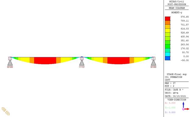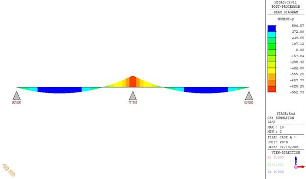 During the comparison, we focused on the bending moments at the support and midspan in particular construction stage for both cases.