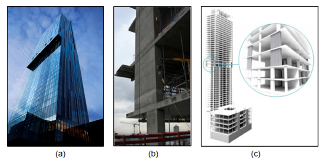 La Torre Beetham de Manchester (Reino Unido), terminada en 2004, es un ejemplo notable de estructura que utiliza columnas móviles para alcanzar objetivos estructurales y estéticos (figura 4.4). Con 168 metros de altura, era uno de los edificios residenciales más altos de Europa en el momento de su finalización.