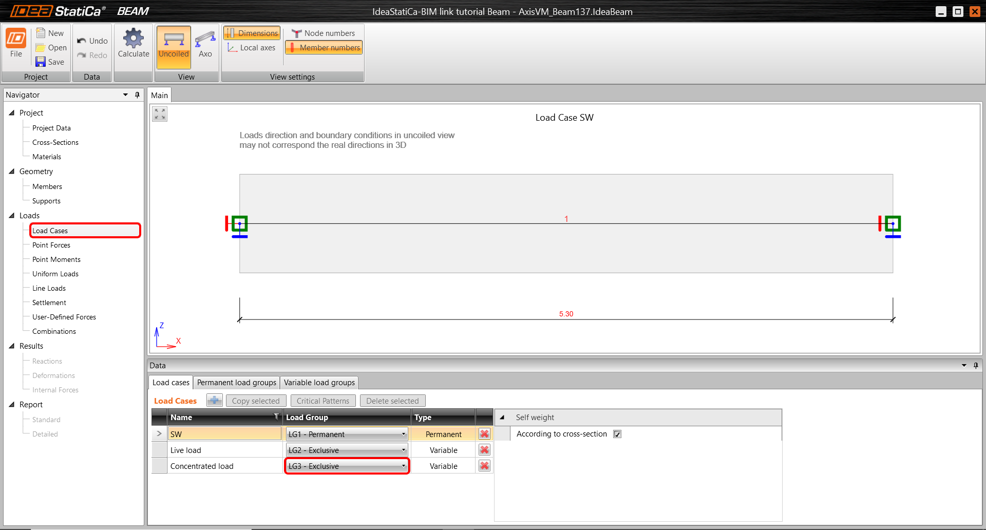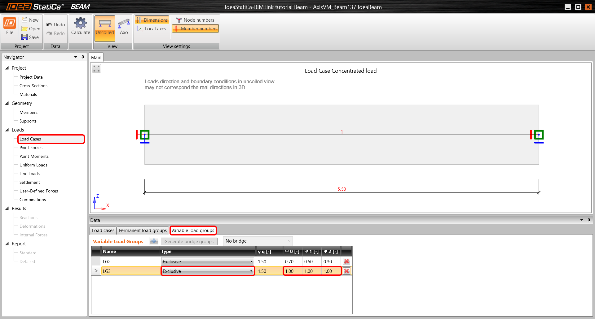 All variable load cases move to the second window. These load cases will be now exported to IDEA StatiCa Beam as user-defined forces.