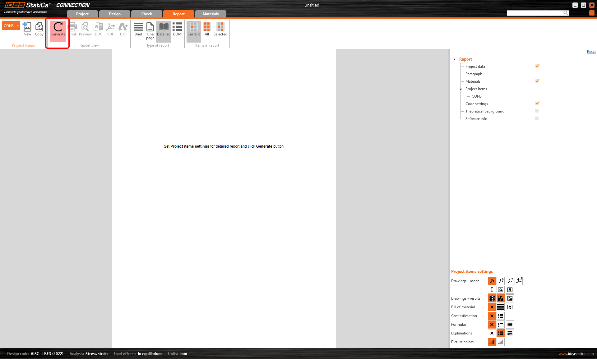 Detailed model and loads reporting