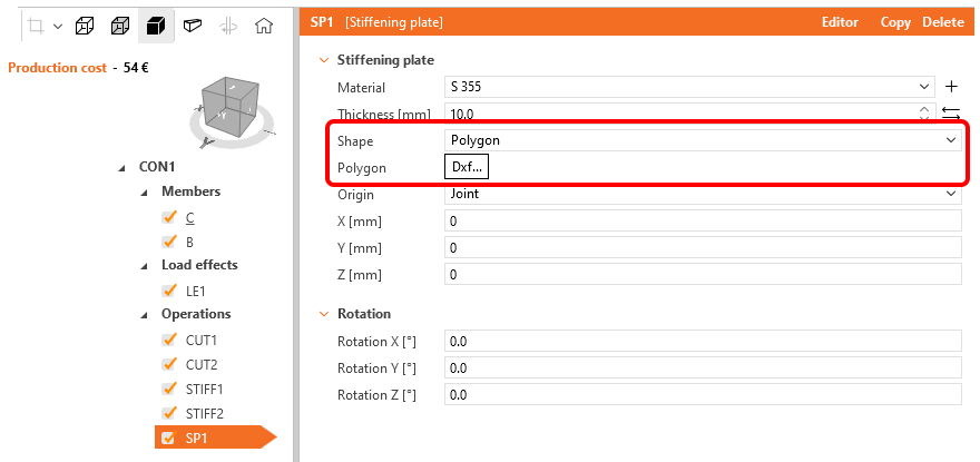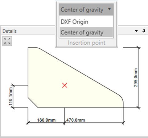 These options enable better control over the placement of imported shapes. The insertion point is displayed with a red cross in the DXF editor, alongside basic shape dimensions, providing users with a clear view of the real position before importing the shape into the model.