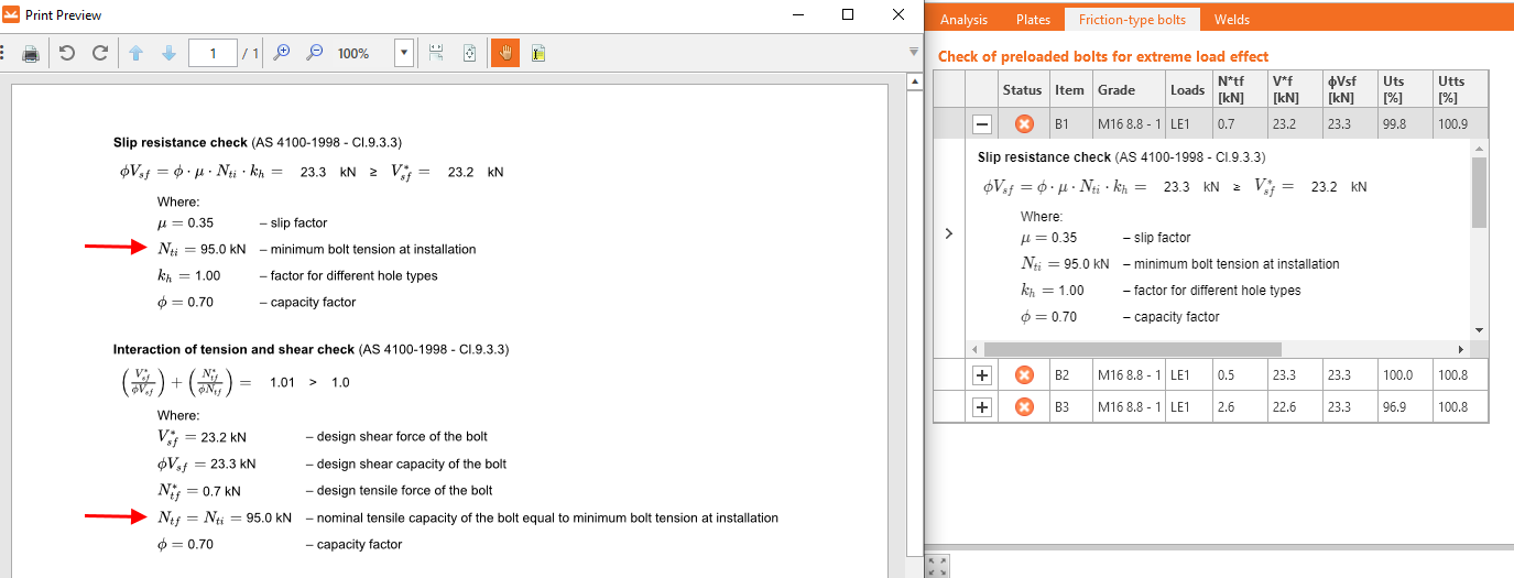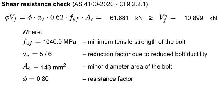 Regarding the code check, it was complemented for high strength bolt assemblies according to ASI TN001 by: